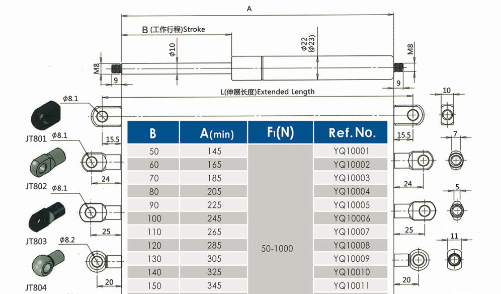 伸縮氣彈簧YQ10/22-3